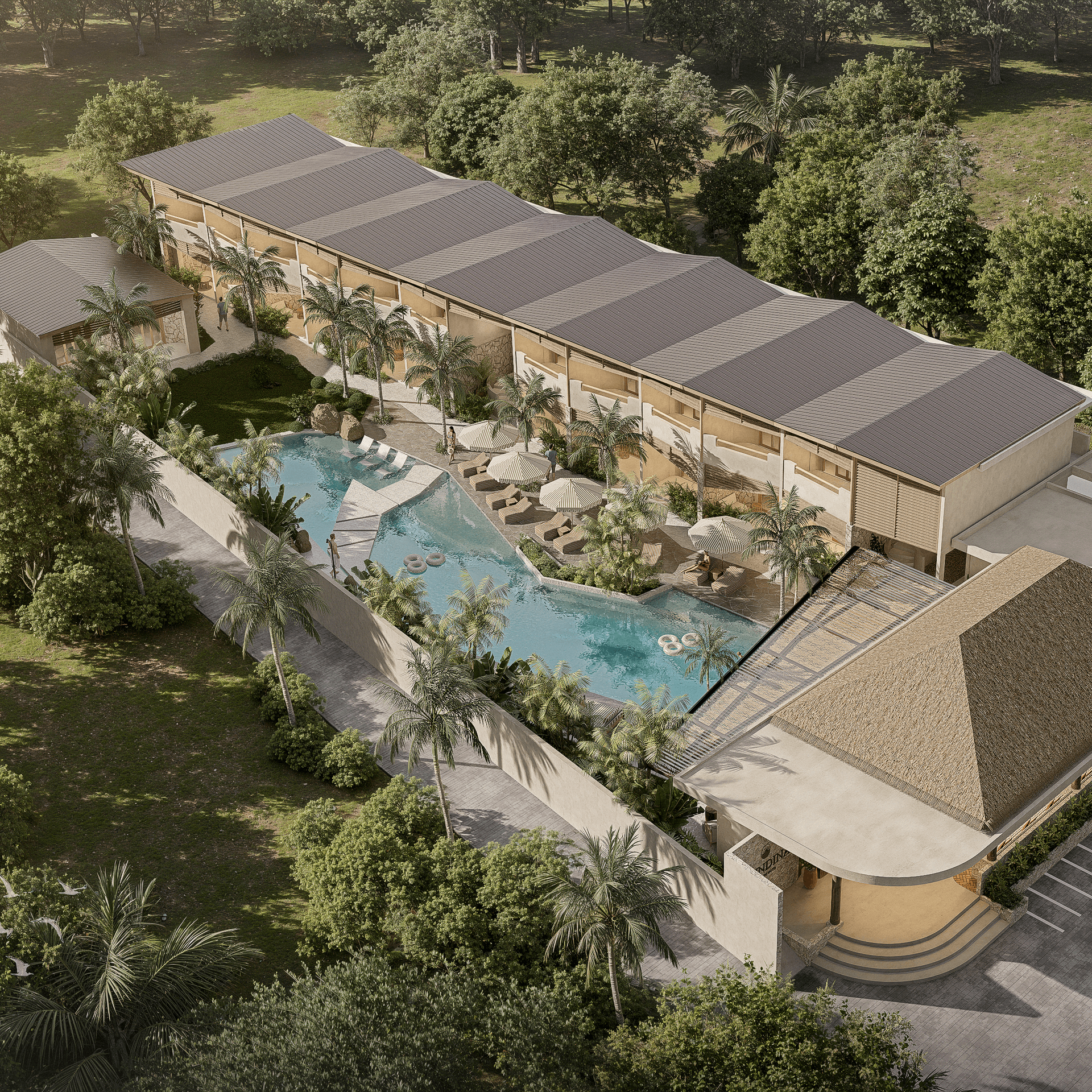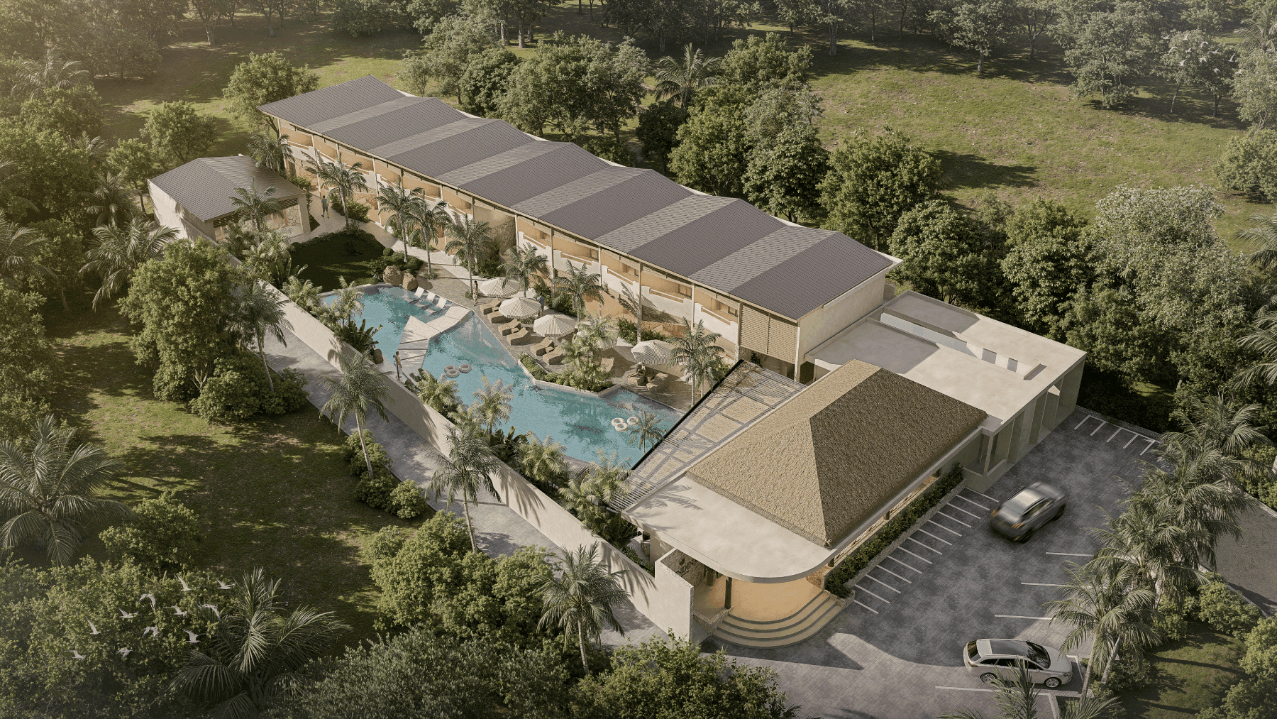 Un elegante complejo de 2.113 m² con restaurante, bar y piscina, diseñado para operar como un hotel boutique de alta demanda turística.